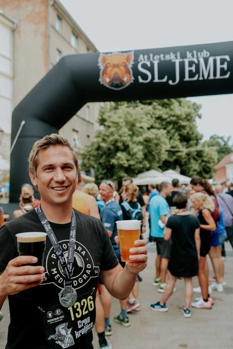 „Sada već legendarni Medvedrun nastao je 2016. godine kada je za jedan stol sjela ekipa koja voli piti pivo i trčati i ekipa koja radi pivo. Tad je skovana ideja da se napravi utrka koja će imati okus pive – figurativno i doslovno jer nas na okrepi na vrhu Jurjevske ulice, popularnom Cmroku, uz vodu, čeka i gutljaj ili dva piva koje te godine predstavljamo“, priča nam jedan od organizatora ispijajući gutljaj Crne Kraljice, popularnog tamnog lagera iz Pivovare Medvedgrad, u čijem znaku je ovogodišnje izdanje.